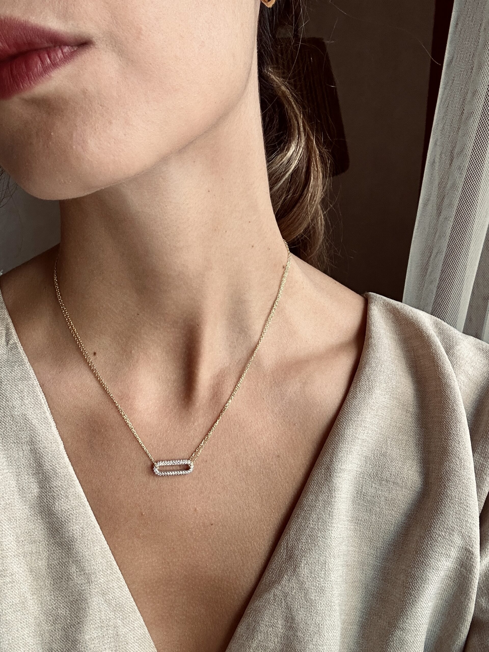 925 ayar gümüş, zincir kısmı altın kaplamadır. Zincir boyu 40+5 cm’dir.