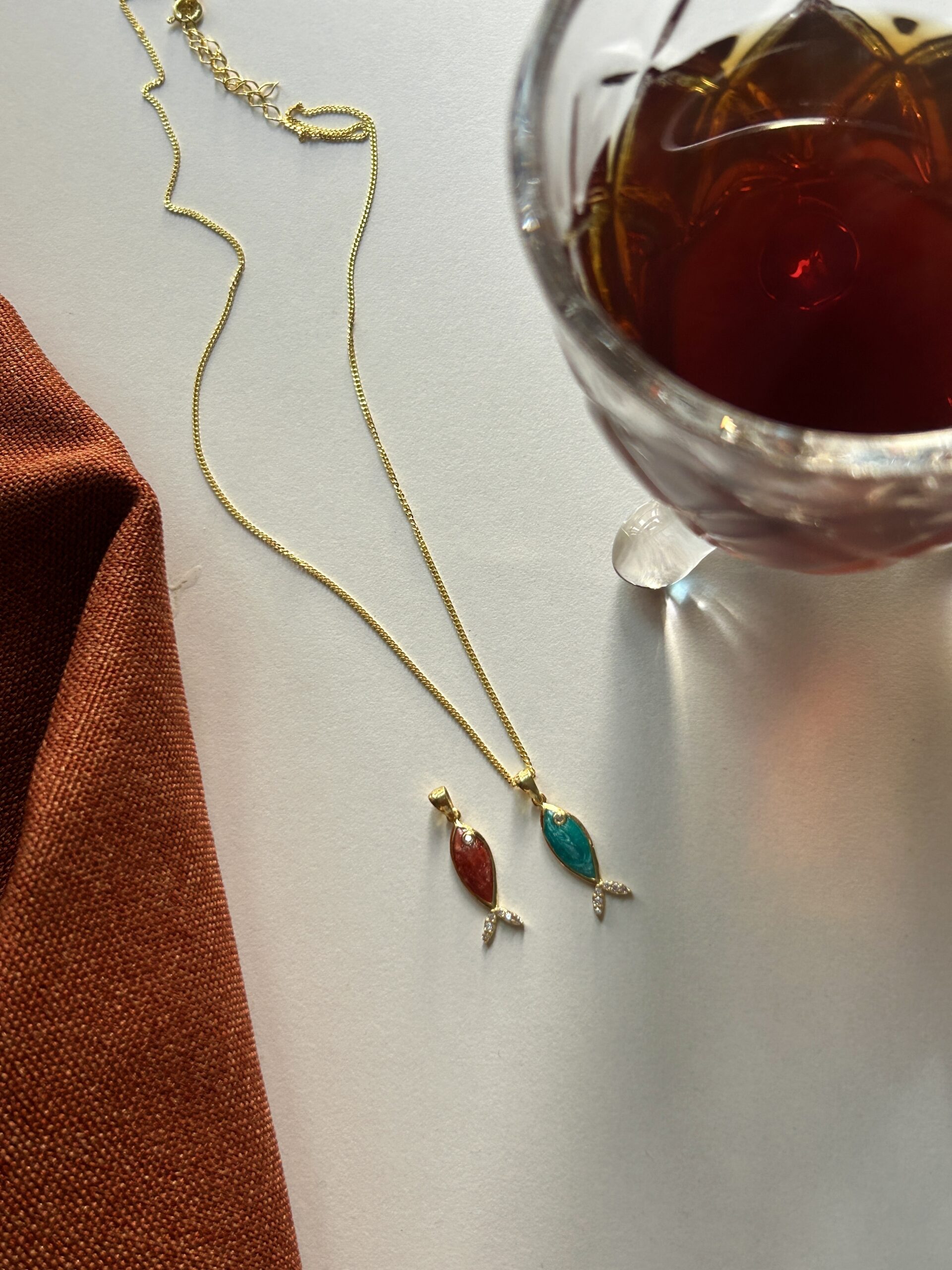 Denizin özgürlüğünü taşıyan zarif balık kolye, canlı renkleriyle enerjinizi yansıtıyor!