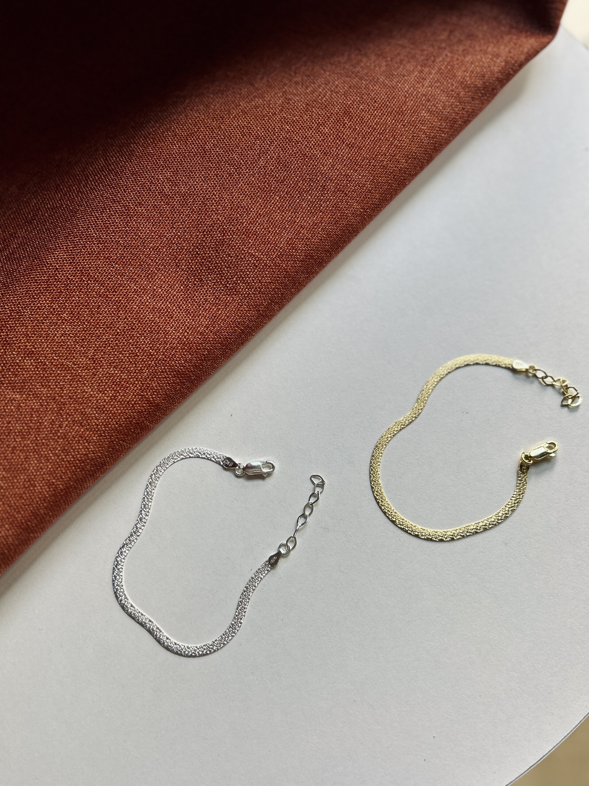 925 ayar gümüş, gold rengi altın kaplamadır. 15+5 cm uzunluğundadır. Sepete eklenirken renk seçimi yapılabilir.